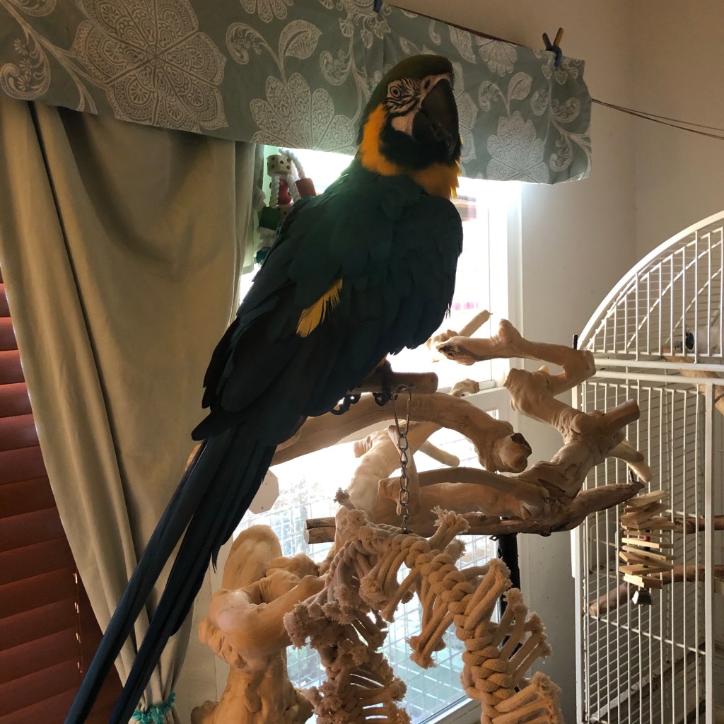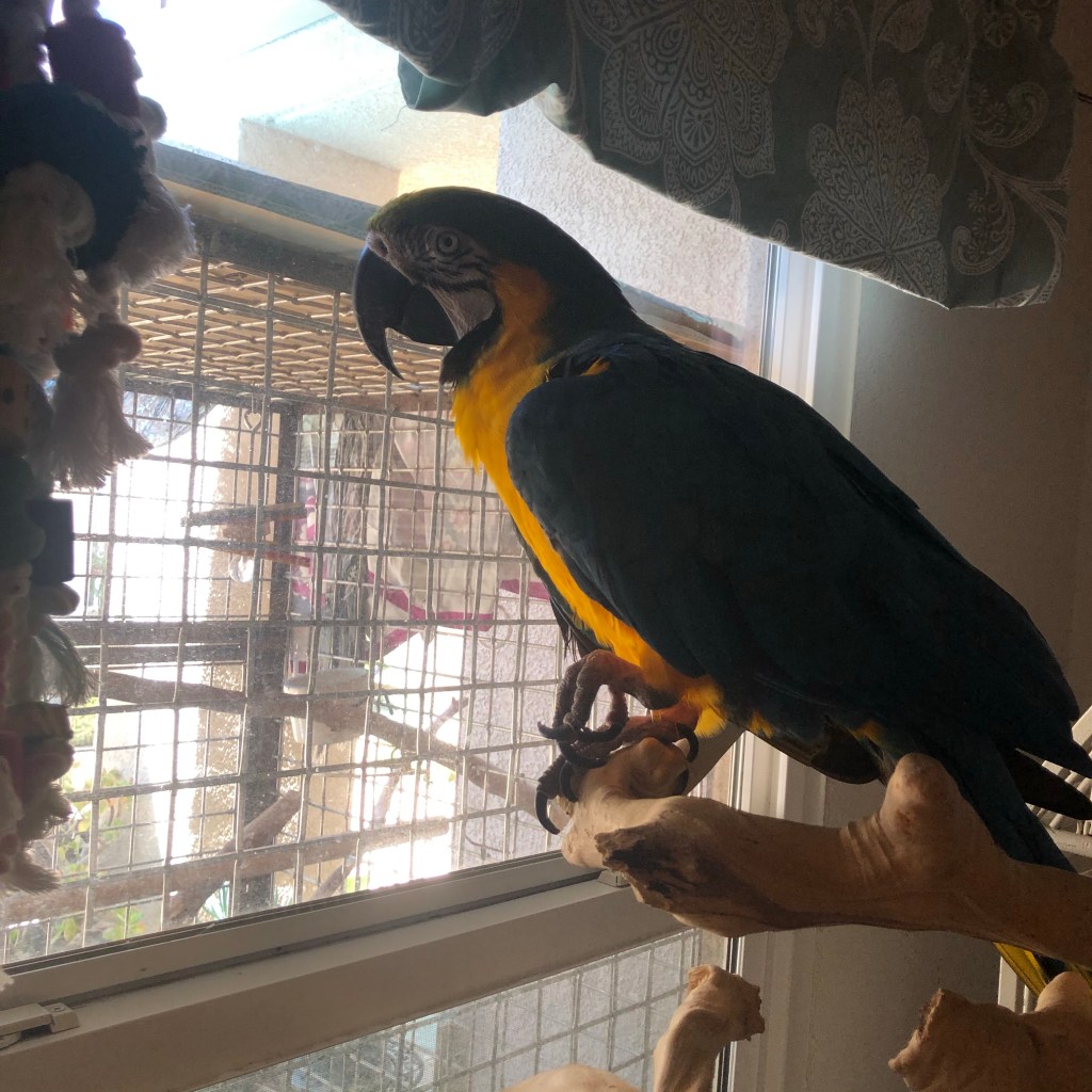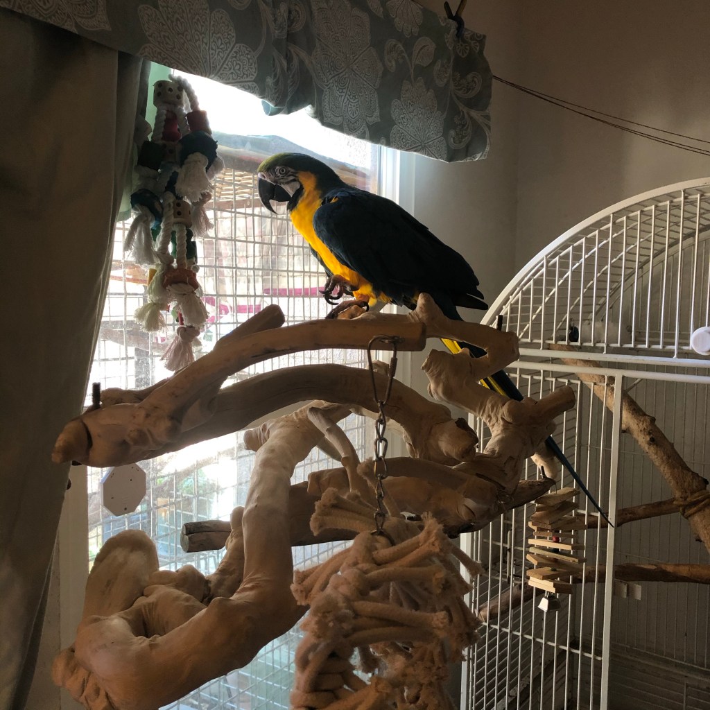 Claire loves her new Java tree perch and toys by the window. Thanks Rick rsetech.com for sharing TooBee’s toys with us. 🙏🏻💞🦜 #parrotlove #rescuebirds #java #parrottoys #macawsofinstagram #parrotlife #parrots #macaws #blueandgoldmacaw #blueandgold #bestlifenow #dailygratitude @ Ventura, California